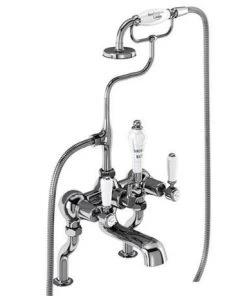 Beautifully crafted and inspired by Victorian and Edwardian designs, the Bayswater Black Crosshead Deck Mounted Bath Shower Mixer is the perfect upgrade for the traditional bathroom. It’s elegant crosshead handles and classic Black indices adds to the timeless look, while the ceramic disc technology ensures long life and smooth operation. Made from high grade brass with a durable chrome finish. Supplied with cradle, hose and telephone handset.