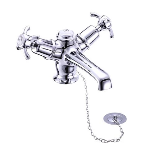 The Anglesey Basin Mixer comes complete with a Plug & Chain and has the option to have a high level or low lying centre piece for decoration.ย