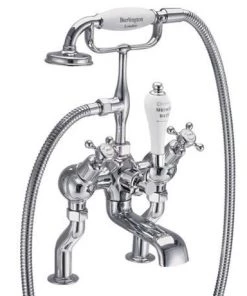 The Claremont range has a traditional design, manufactured to the highest standards using the latest technology. This product features the tap heads tilted or “angled”, it is a deck mounted bath/shower mixer.Product comes with a Decorative Swan Necked Adjuster for Showerhead with option for High or Low Level Display (High Level Pictured in main image).