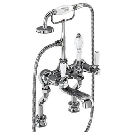 Wish your tub looked a little more regal? These striking Burlington Kensington bath taps certainly look the part. Their two tap hole design features white ceramic tap heads and a separate, telephone-style hand shower. You can choose between a standard cradle for the shower or opt for the grand-looking S-shaped design. This piece comes with a flow straightener and aerator included, so it’s equally suitable for homes with low or high-pressure flows.