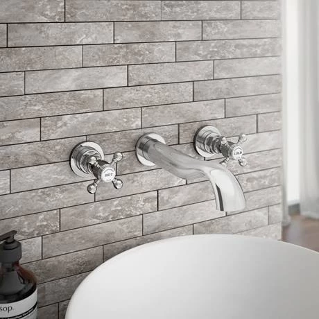 The traditional Chatsworth 1928 chrome three hole wall mounted basin tap, create a traditional feel in your bathroom with this classically styled luxury basin mixer tap. Manufactured from brass with a polished chrome plated finish. Features decorative quarter turn cross heads with classic white indices. Transform any bathroom’s decor to the luxury and elegance of yesteryear.
