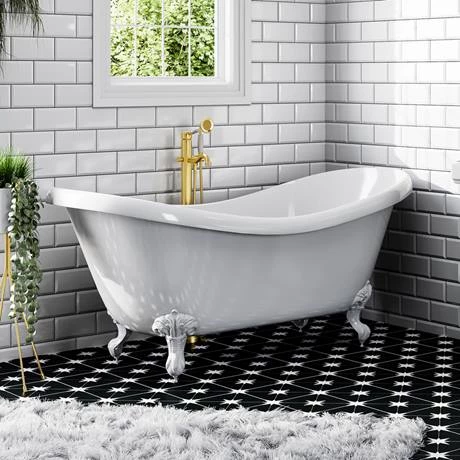 The Lancaster free-standing traditional style bath shower mixer tap will bring a touch of luxury to any bath. Manufactured from solid brass with a eye catching polished chrome finish, features a classic design and elegant swan-neck spout, this tap will make a striking focal point in your bathroom. You can adjust water flow and temperature effortlessly with the stylish white ceramic single lever handle. For use with free-standing bath tubs, tap includes a traditional style shower handset and flexible hose.ย